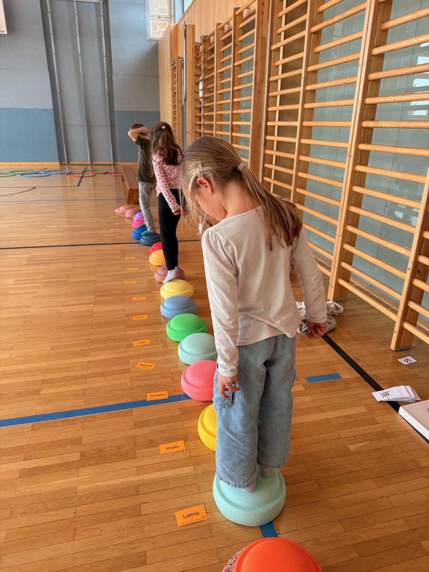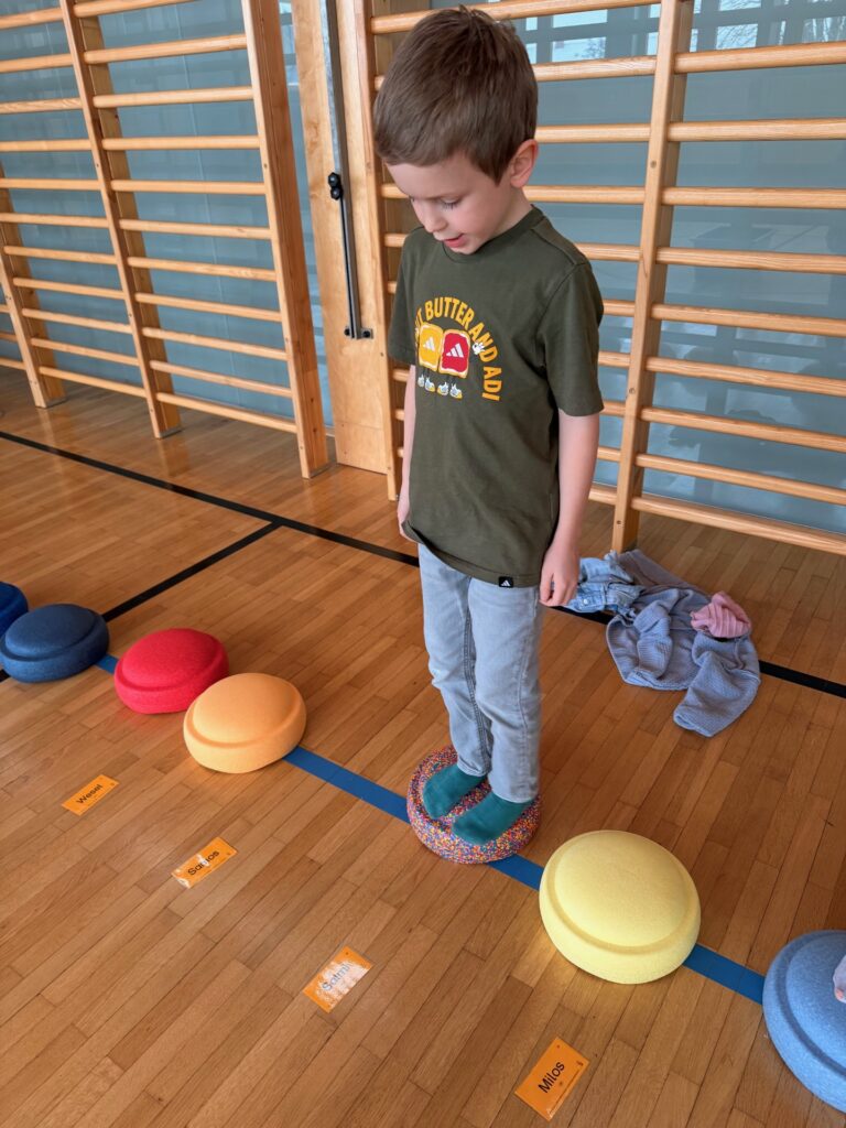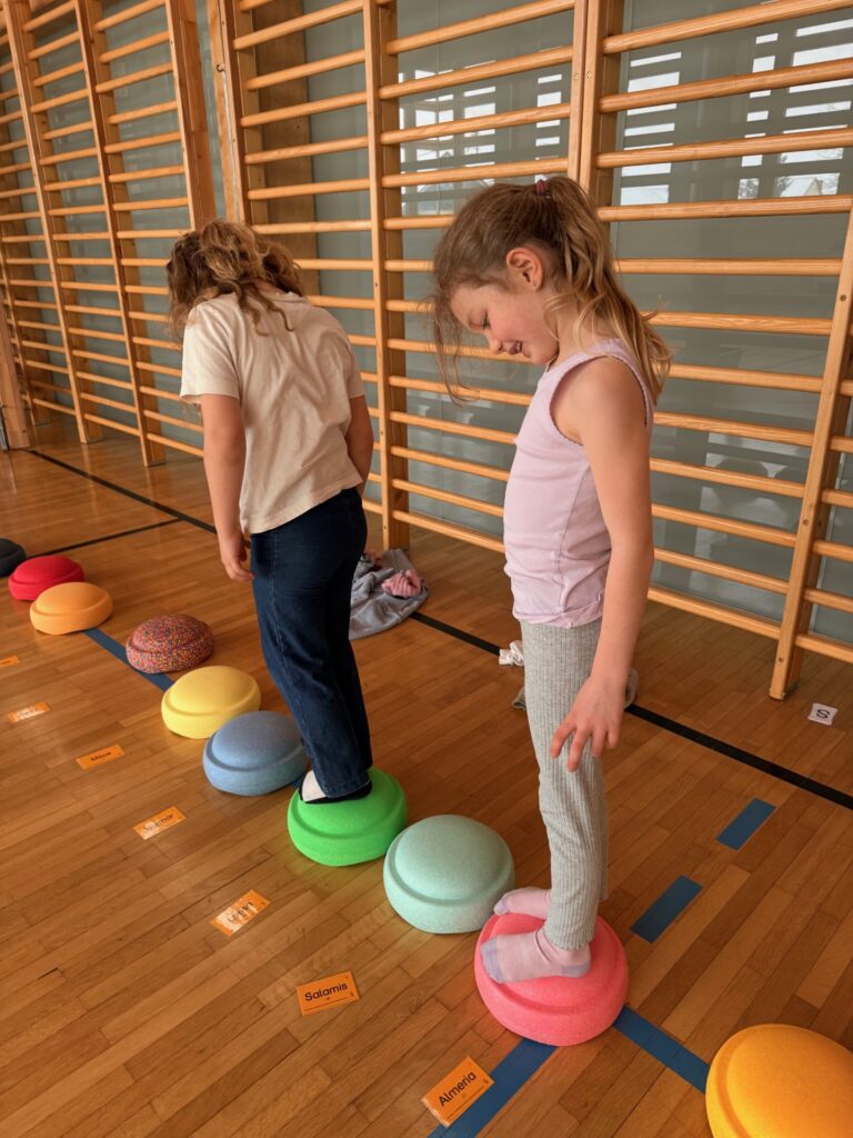 Die Kinder der 1. Klassen haben ihre Förderstunden großteils im Turnsaal. Spielerisch und aktiv in Bewegung lernen sie zu lesen, schreiben oder rechnen! Die Bilder sprechen für sich; Lernen mit Freude hat hier höchste Priorität.