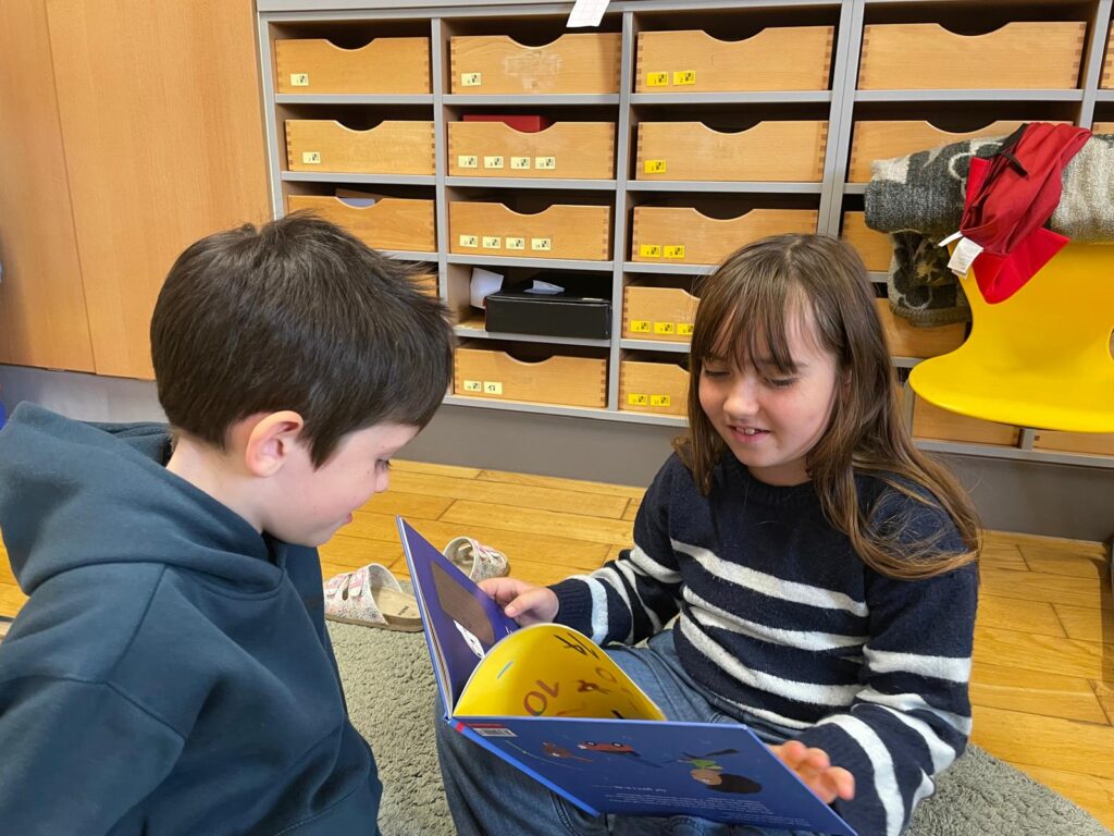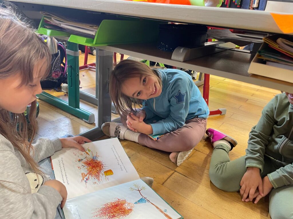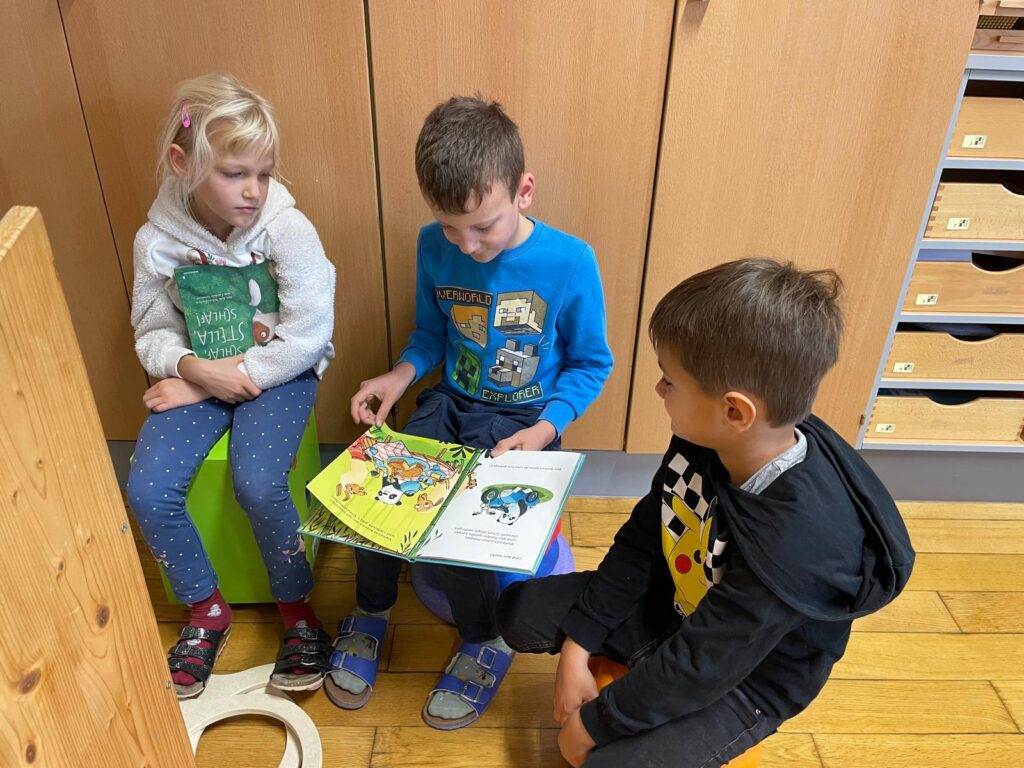 Einmal im Monat besuchen die Vorschulkinder die Kinder der 2.b Klasse und genießen das Vorlesen der Bilderbücher.